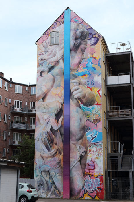 Alle veje fører til Vejgård, og vi valgte Østerbro. Dette murmaleri finder man i gården bag Østerbro 8: